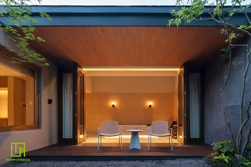 هتل «خانه جیانگنان» دارای چهل اتاق مهمان است که در دو حجم جدید ساختهشده جای گرفتهاند و فرم ایوانها و تراسهای باغهای کلاسیک یانگژو را بازتاب میدهند. راهروهای روان و سقفهای لایهلایه، حس حرکت و تنوع را ایجاد میکنند. آجرهای بازیافتی، بتن قالببندیشده با بامبو و کاشیهای سنگی دستتراش، تکنیکهای معاصر را با بافت دیوارهای قدیمی و کاشیهای سبز کوچک معماری محلی ترکیب میکنند.