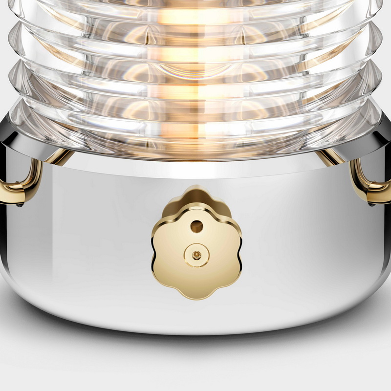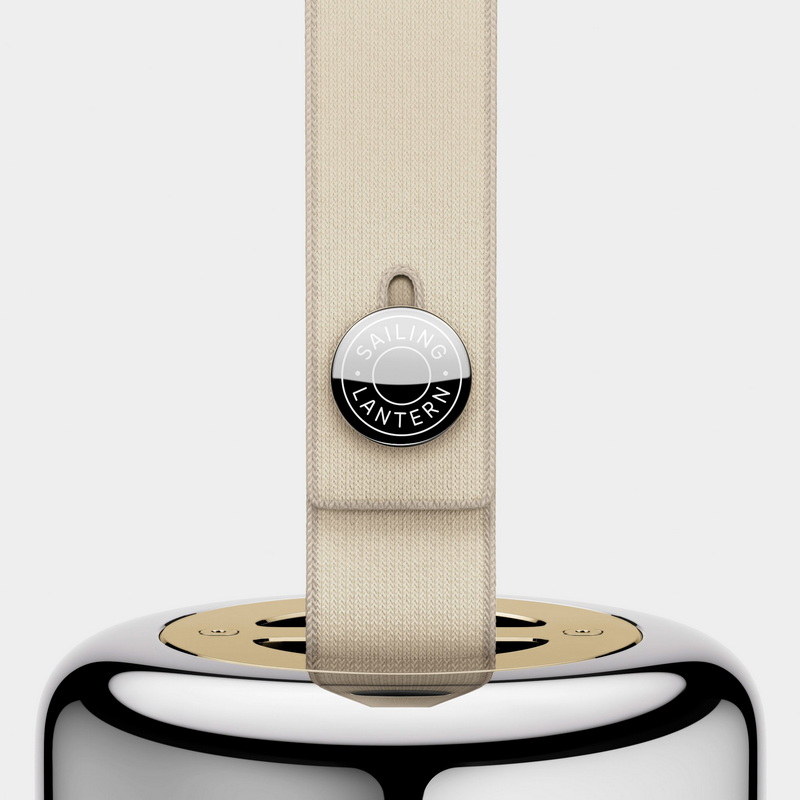 این فانوس در نگاه اول، ادای احترامی به فانوسهای دریایی کلاسیک و لنزهای فرنل، با جزییاتی کاملاً مدرن است. بدنه اصلی از فولاد ضد زنگ دریایی ساخته شده که مقاومت بالایی در برابر خوردگی و شرایط سخت محیطی دارد. جزئیات ظریفی از طلا و یک حباب شیشهای دستساز، به آن جلوهای لوکس و در عین حال کاربردی بخشیدهاند. بند پلیاستری بافتدار آن نیز حمل و آویزان کردن فانوس را آسان میسازد. هر عنصر در این فانوس با وسواس انتخاب شده تا حس دوام، کیفیت و قابلیت تعمیر را القا کند؛ اصلی که در طراحی تجهیزات دریانوردی سنتی ریشه دارد و در تضاد با فرهنگ «بخر، استفاده کن، دور بینداز» امروزی قرار میگیرد.
