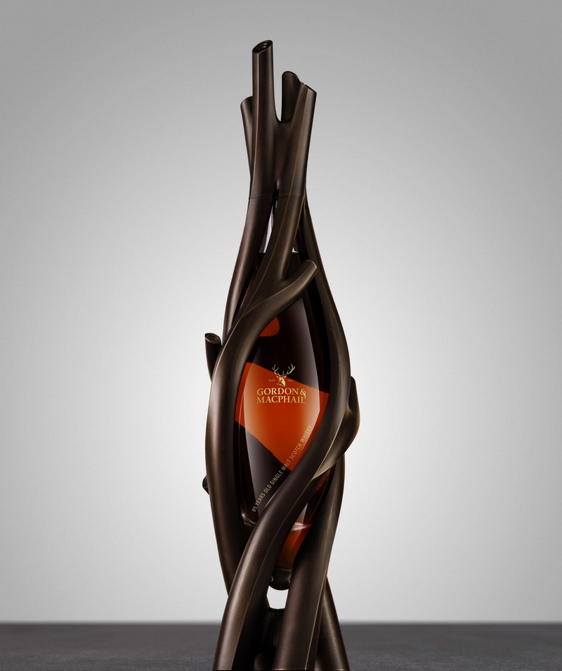 جین گنگ، معمار آمریکایی و بنیانگذار «استودیو گنگ»، اخیراً یک بطری ویژه برای ویسکی «گوردون اند مکفیل» طراحی کرده است. این ویسکی، قدیمیترین ویسکی جهان به شمار میرود و بطری طراحیشده با نام «هنر در چوب بلوط»، با شاخههای برنزی پوشانده شده است تا حس حفاظت و مراقبت طبیعی شاخههای درخت را القا کند.