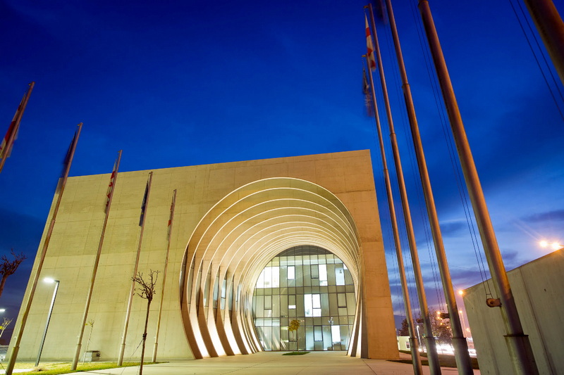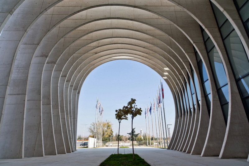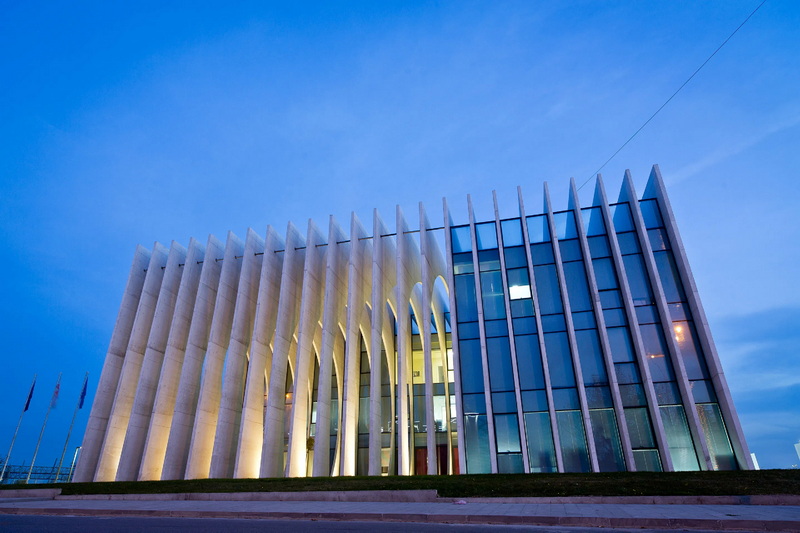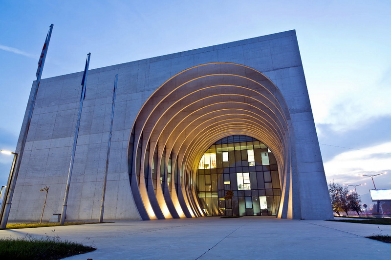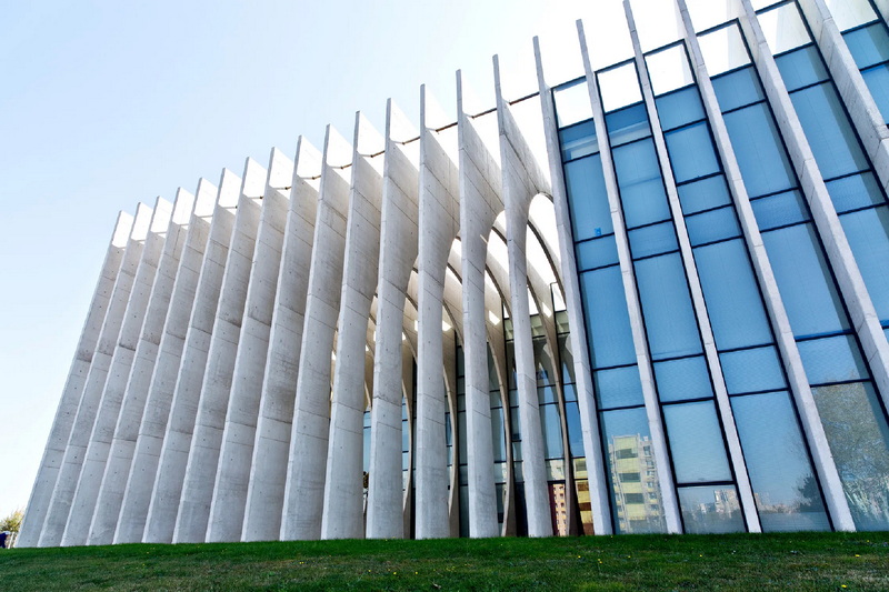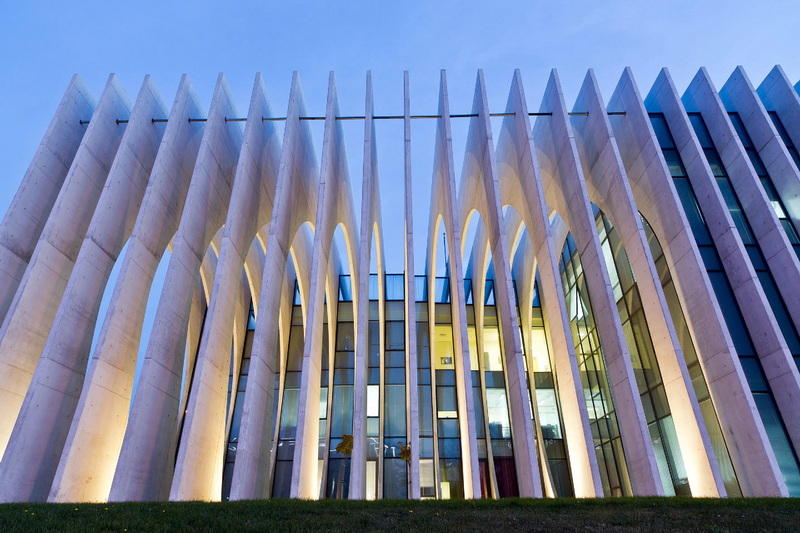 در این ساختمان، ۲۴ تیغهی باریک و سفید بتنی، بهصورت نمادی شاعرانه از حرکت و دگرگونی در فضا طراحی شدهاند. هر تیغه با ظرافتی خاص، لحظهای از زمان را تداعی میکند. قوسهای نامتقارن درون هر تیغه، حس پویایی و تغییر را به نمایش میگذارند و روح انعطافپذیر بنا را بازتاب میدهند.
