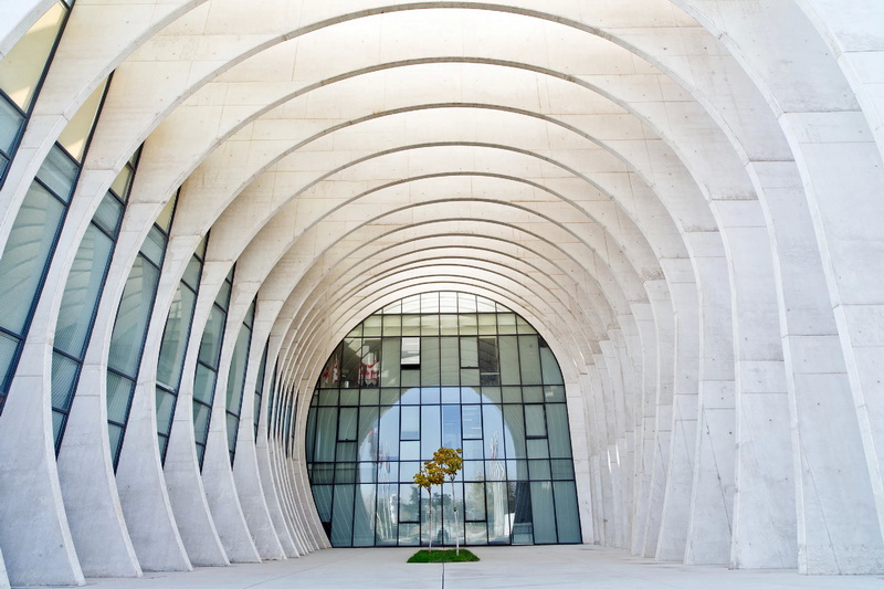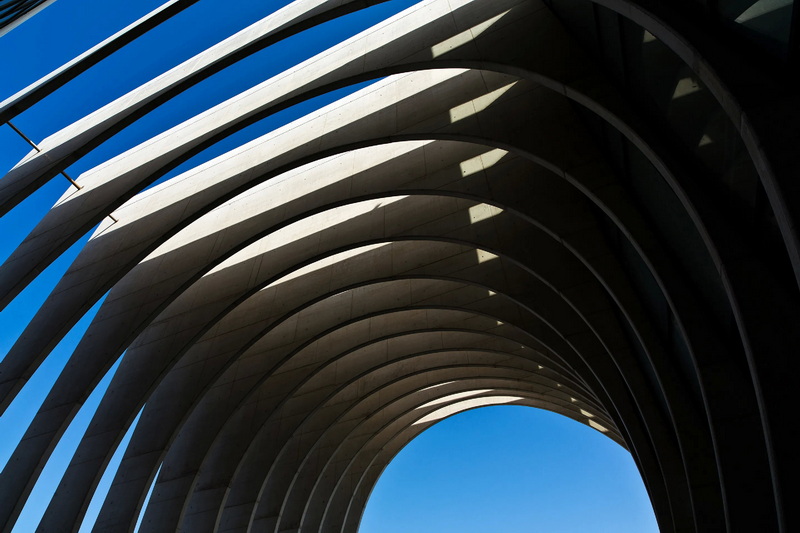 رنگ سفید بتن، سادگی و خلوص را القا میکند و زمینهای فراهم میآورد تا بازی نور و سایه، ریتم و عمق سازه را برجستهتر کند. این رویکرد، توازن میان ثبات و پویایی را نشان میدهد و معماری را به موجودی زنده و واکنشپذیر در برابر انسان و محیط تبدیل میکند.