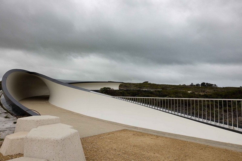 فرم سازه یک پوسته لولهای و خمیده، با دو انتهای باز است که بهصورت ارگانیک در میان توپوگرافی و پوشش گیاهی ساحلی جای گرفته است. بهگفته طراحان، شکل و موقعیت سکوی تماشا برای تقویت تجربه حسی بازدیدکنندگان، از جمله شنیدن صدای امواج و حس پاشش آب دریا، انتخاب شده و همچنین یادآور تصاویر موجهای خروشان یا نهنگی است که از آب بیرون میجهد.