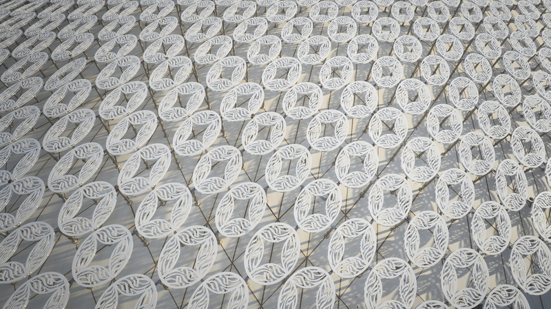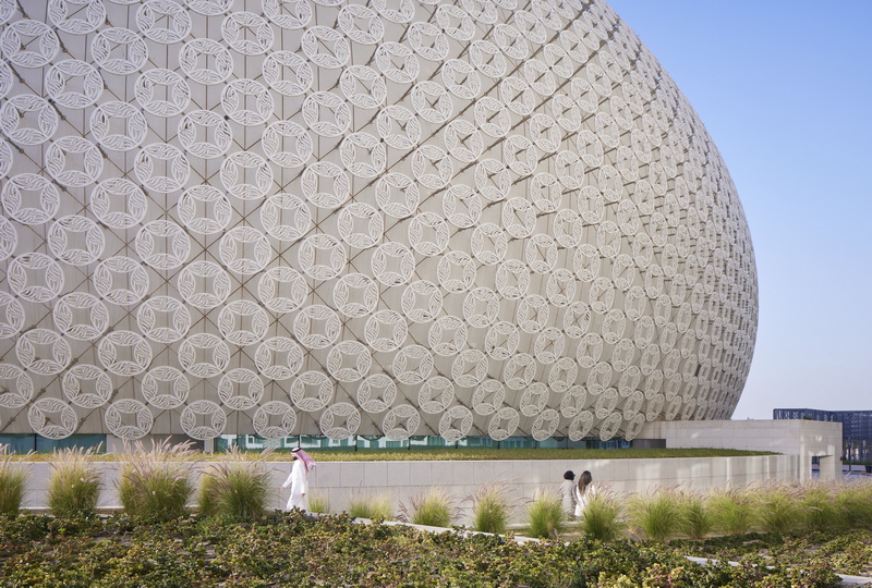فلسفه اصلی طراحی بر بازتفسیر هوشمندانه یکی از بنیادیترین عناصر معماری خاورمیانه، یعنی مشربیه، استوار است. به جای تقلید صرف، تیم طراحی یک سیستم نمای دوپوسته با کارایی بالا خلق کرده که ساختمانها را در بر میگیرد. این پوستههای توریمانند و سبک، همزمان سه عملکرد کلیدی را انجام میدهند. اول، به عنوان یک سایهبان مؤثر، از جذب گرمای خورشید در اقلیم گرم کویت جلوگیری کرده و به طور چشمگیری مصرف انرژی را کاهش میدهند. دوم، با همکاری هنرمند کویتی، فرح بهبهانی، این نماها به بومهایی برای خوشنویسی تبدیل شدهاند که هویت فرهنگی کویت را به زبانی مدرن بیان میکنند. سوم، این پوستهها با فیلتر کردن نور خورشید، یک بازی پویا و دائمی از نور و سایه در فضاهای داخلی ایجاد میکنند که در طول روز تغییر میکند و در شب، با نورپردازی داخلی، به نمایی درخشان تبدیل میشوند.