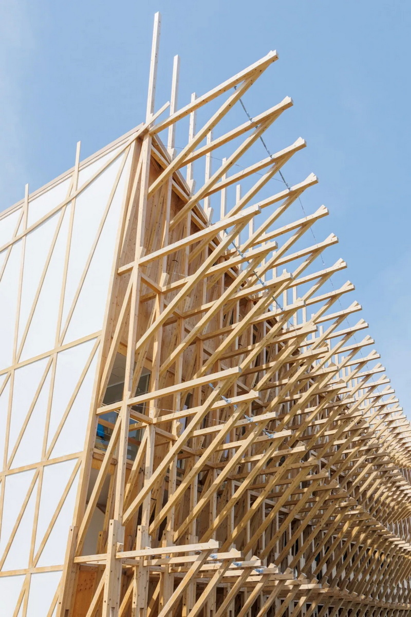 این پاویون، با الهام از قایقهای سنتی «داو» بحرینی ساخته شده است. ساختار چوبی آن با استفاده از تکنیکهای سنتی نجاری و الهام از هنر چوب ژاپنی طراحی شده است. این پاویون با مساحت ۹۹۵ متر مربع و ارتفاعی بین ۱۳ تا ۱۷ متر در چهار طبقه ساخته شده است. این سازه از حدود ۳٬۰۰۰ قطعه چوبی بدون استفاده از بتن در پیسازی ساخته شده و به گونهای طراحی شده که پس از پایان اکسپو بهطور کامل قابل بازیافت باشد. همچنین، با بهرهگیری از نسیم دریا، از سیستمهای خنککننده طبیعی استفاده میکند تا مصرف انرژی را به حداقل برساند.