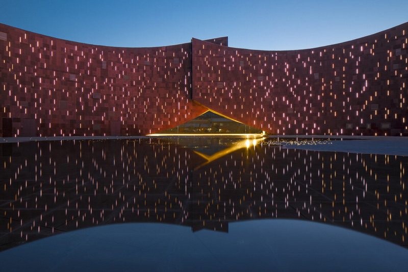فرم اصلی ساختمان بهصورت ترکیبی حلقوی و سیال طراحی شده که از شش حجم ذوزنقهای بههمپیوسته تشکیل میشود. این احجام در نقاط اتصال، فواصل و روزنههایی ایجاد میکنند تا نور طبیعی را به درون فضا هدایت کنند. این بازی نور و سایه، مسیری معنوی را برای بازدیدکنندگان میسازد و جریان حرکت آنها را از ورودی تا خروجی هدایت میکند. هر بخش از بنا همچون مرحلهای از یک سفر روحی طراحی شده و توالی فضاها، مفهوم بازگشت و دگرگونی را تداعی میکند.