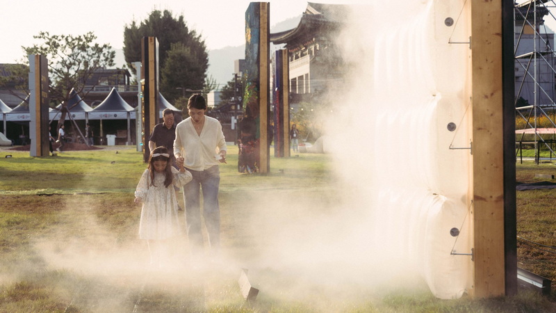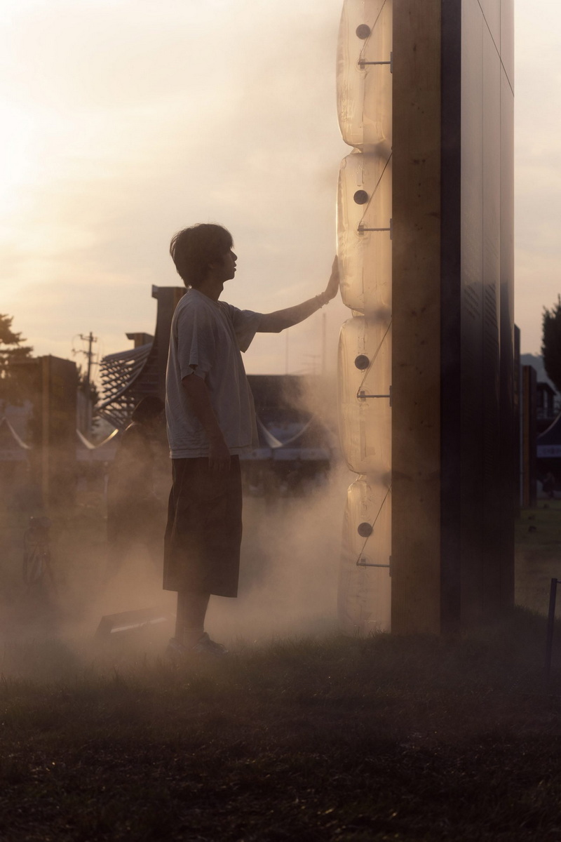 عنصر کلیدی «سلولهای تنفسی»، شبیهسازی ریتم حیات است. ما یانسونگ توضیح میدهد: «هر سلول یک موجودیت مستقل را در درون شهر نشان میدهد، در حالی که تعامل ریتمیک نور و مه، نماد آهنگ تنفس زندگی و خود شهر است.» در هوای گرم، این ساختار با فعال کردن سیستم مهپاش خود، یک «غبار آب اثیری» آزاد میکند که نه تنها به بازدیدکنندگان حس خنکی و راحتی موضعی میبخشد ، بلکه رطوبت لازم برای پوشش گیاهی اطراف را نیز تأمین میکند. نورپردازی یکپارچه، بهویژه در شب، جلوهای پویا و ریتمیک به سلولها میدهد.