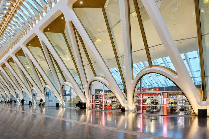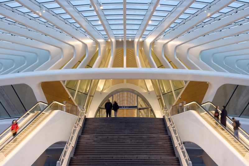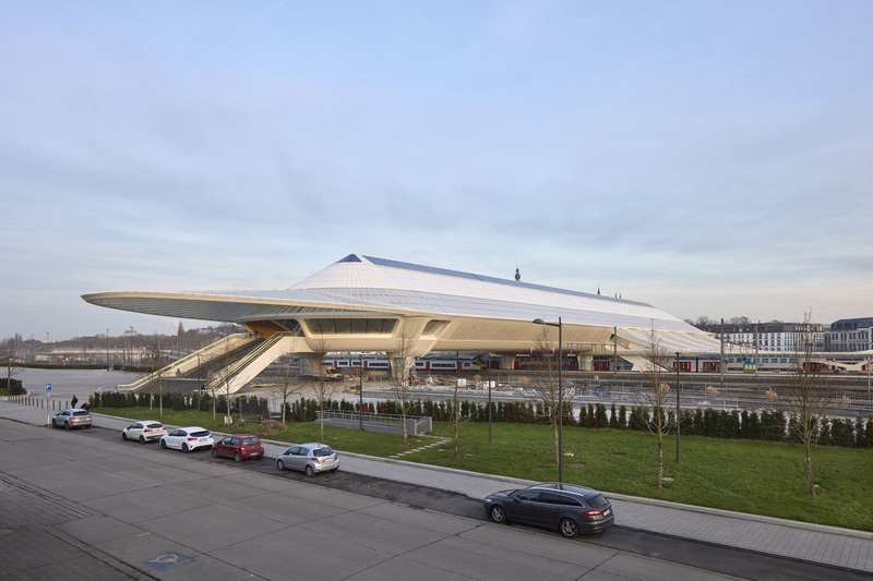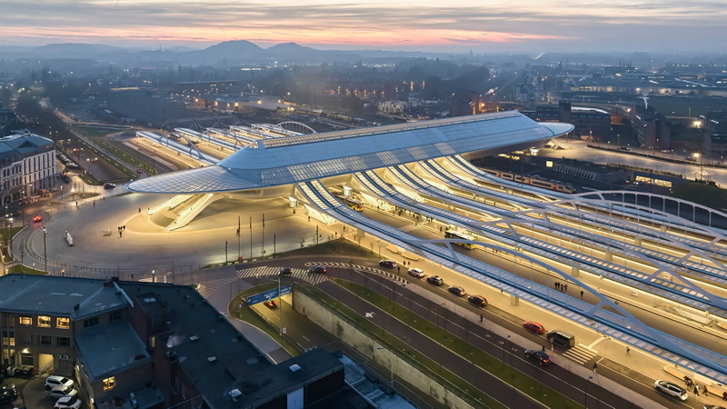 ایستگاه جدید راهآهن شهر مون در بلژیک، با بدنهای گسترده از شیشه و فولاد و نمایی خمیده و روان، توسط معمار سرشناس سوئیسی-اسپانیایی سانتیاگو کالاتراوا، طراحی شده و ژانویه ۲۰۲۵ رسماً افتتاح شد.