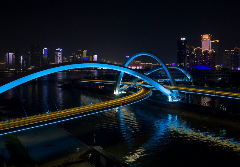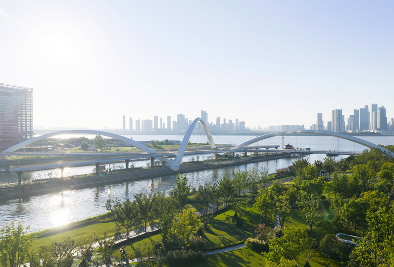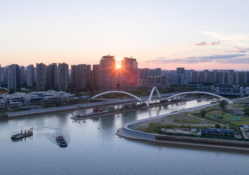 طراحی این پل از پیشینهی تاریخی شهر هانگژو در هنر گلدوزی ابریشم الهام گرفته است. بر همین اساس، معماران زاها حدید سه قوس سفیدرنگ را طراحی کردهاند که بهشکلی زیبا از بالا و پایین سازهی پل عبور کرده و در هم تنیده میشوند. این پل فولادی بر فراز «کانال بزرگ چین» (قدیمیترین و طولانیترین آبراه مصنوعی جهان) ساخته شده است. پل دقیقاً در نقطهای قرار دارد که این کانال به رودخانهی چیانتانگ میپیوندد؛ رودخانهای که در هانگژو به دلیل جزر و مد خاص خود، معروف به «اژدهای نقرهای»، شهرت دارد.