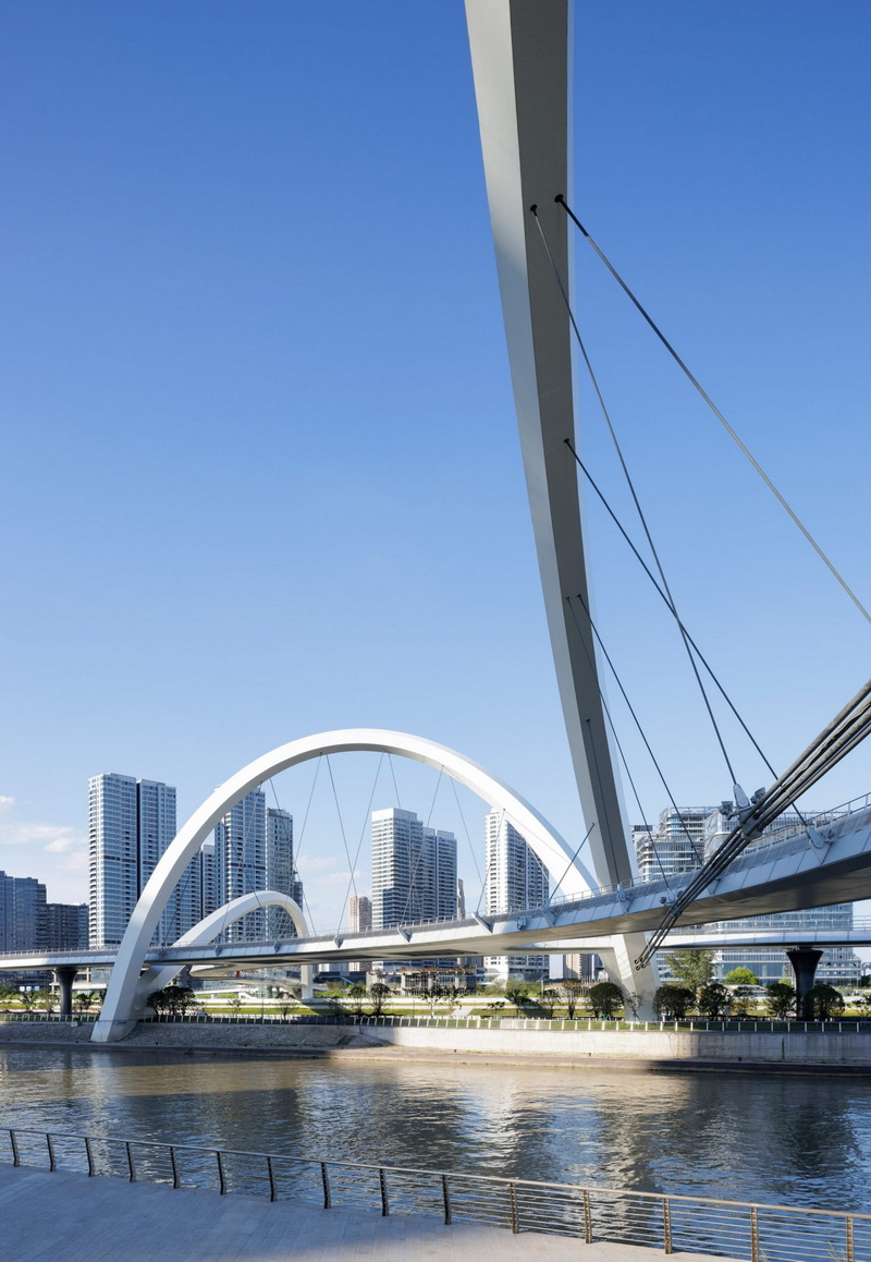دفتر معماری زاها حدید در این باره میگوید: «طراحی پل، با الهام از میراث غنی هانگژو بهعنوان یکی از قطبهای گلدوزی ابریشم در چین، برداشتی مدرن از تکنیکهای سنتی دوخت و دوز ارائه میدهد. سازهی سیال و منحنی پل، درست مانند تار و پود پارچه، در هم میپیچد، روی هم قرار میگیرد و به هم متصل میشود. نتیجهی آن، پلی برای عابران پیاده و دوچرخهسواران است که بخشهای مسکونی، شهری و تجاری را به یکدیگر پیوند میدهد.»