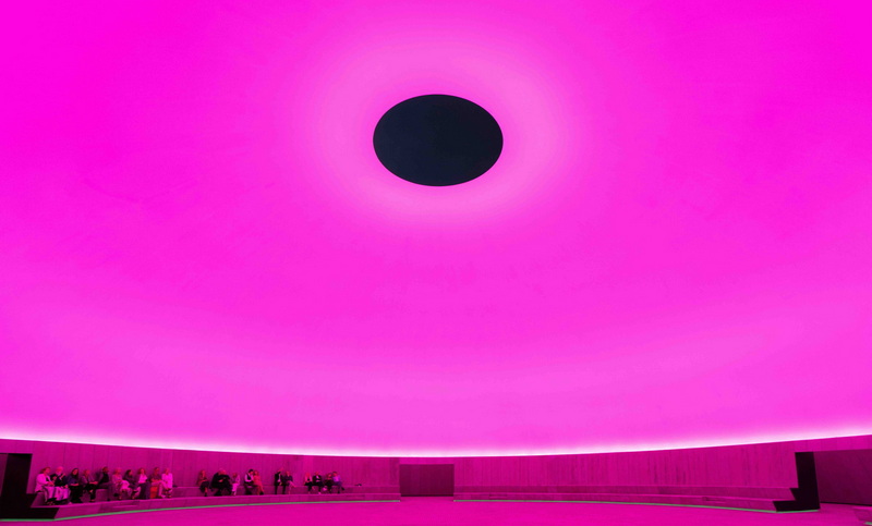 بازدیدکنندگان از طریق یک راهروی زیرزمینی و غرق در نور، سفری را آغاز میکنند که در نهایت به فضای داخلی گنبد منتهی میشود. در این اتاق مینیمال، یک دهانه مرکزی بزرگ در سقف، قاب بیواسطهای از آسمان ایجاد میکند. با استفاده از یک سیستم نورپردازی دقیق و کالیبرهشده، فضای گنبد در طول روز با رنگهای تکرنگ و متغیر نورانی میشود. این بازی نور و فضا، باعث میشود که آسمان از طریق دهانه مرکزی، کیفیتی فراتر از یک منظره ساده پیدا کند.