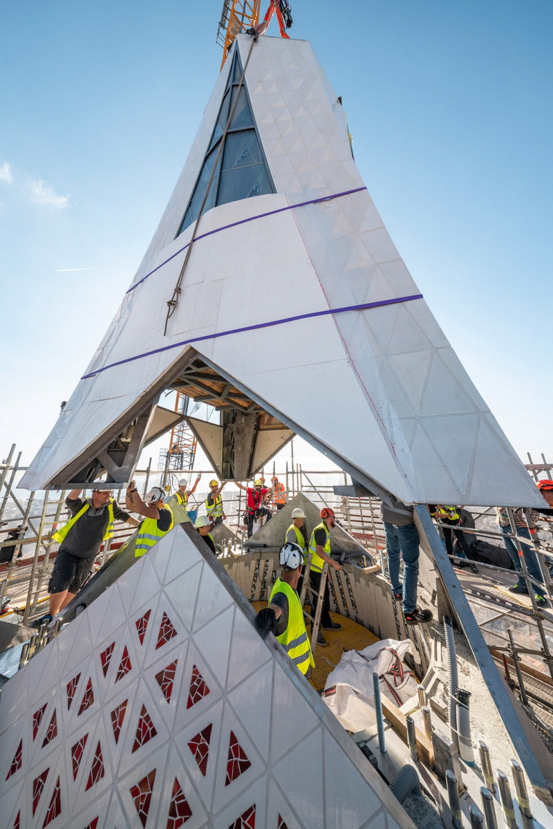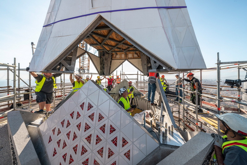 بخش ۲۴ تُنی که اخیراً نصب شد، بازوی پایینی صلیب ۱۷ متری را تشکیل میدهد که در بالای برج عیسی مسیح قرار خواهد گرفت. این سازه دارای پایهای مربعشکل است که در قسمت بالایی به هشتضلعی تبدیل شده و با سرامیک سفید لعابدار و صفحات شیشهای پوشیده شده است.